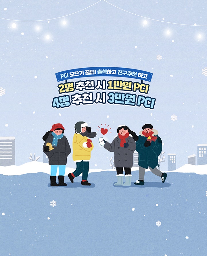 - 이벤트 기간 내 최종적으로 달성한 친구추천 수에 따라 최대 3만원 상당의 PCI 추가 증정