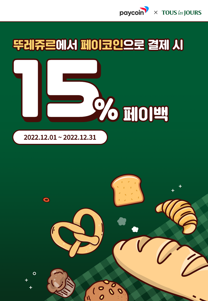[뚜레쥬르] 전 상품15% 페이백 : 2022.12.01 ~ 2022.12.31