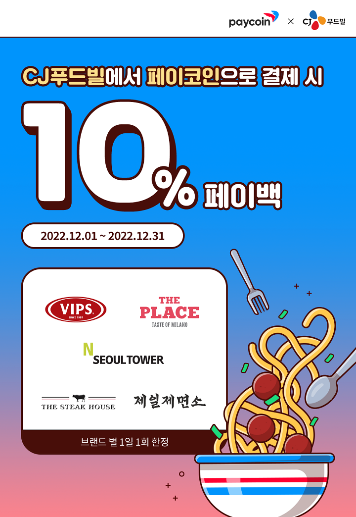 [빕스][더플레이스][N서울타워][더스테이크하우스][제일제면소][CJ푸드월드] 상시10% 페이백 : 2022.12.01 ~ 2022.12.31
