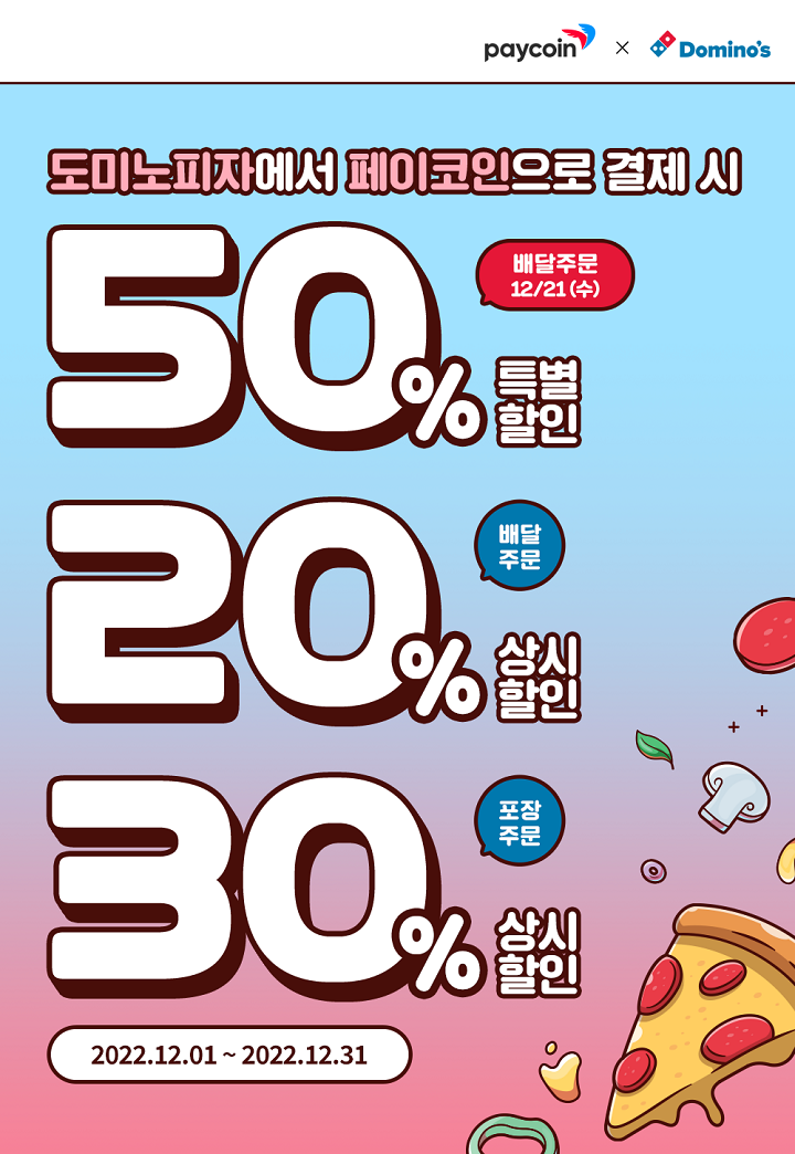 [도미노피자] 배달 50% 할인 : 2022.12.01 ~ 2022.12.31