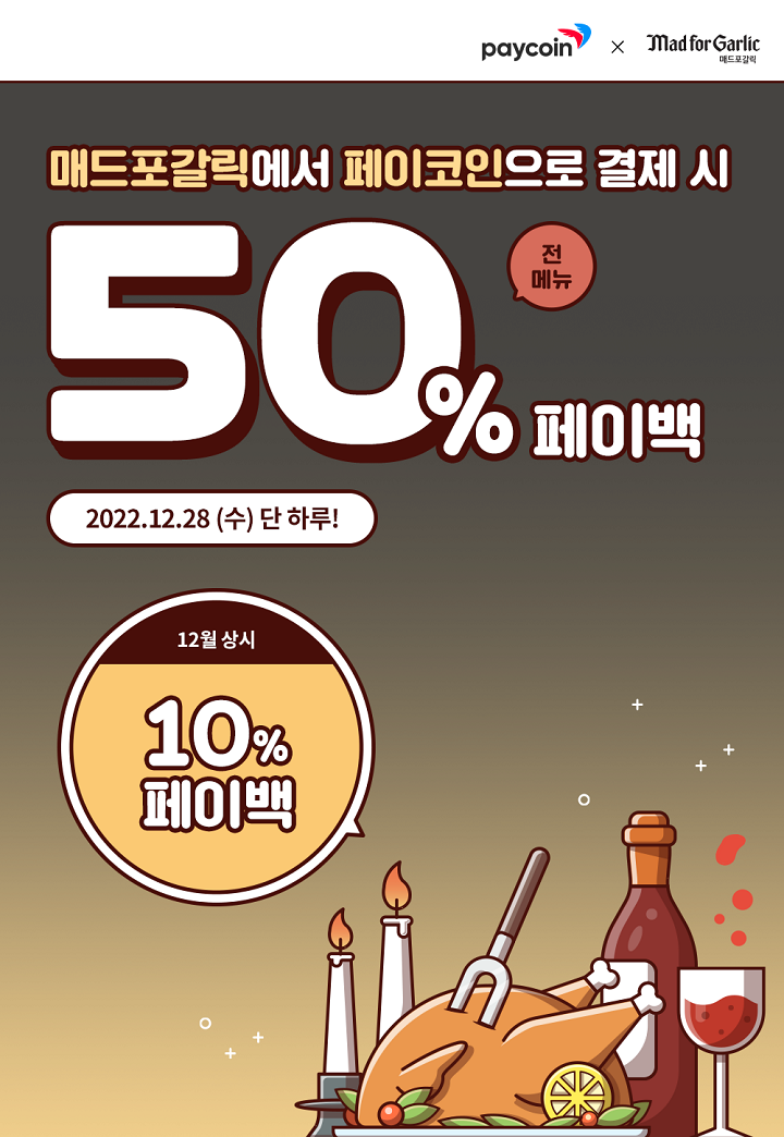 * 50% 페이백 특별 프로모션은 12월 23일 (금) 진행되며 최대 한도는 5,000원.