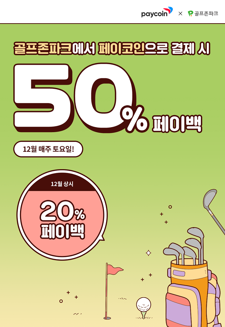 *골프존파크 매장에서 페이코인 결제 시, 상시 1일 5천원 한도로 20% 페이백이 진행.
